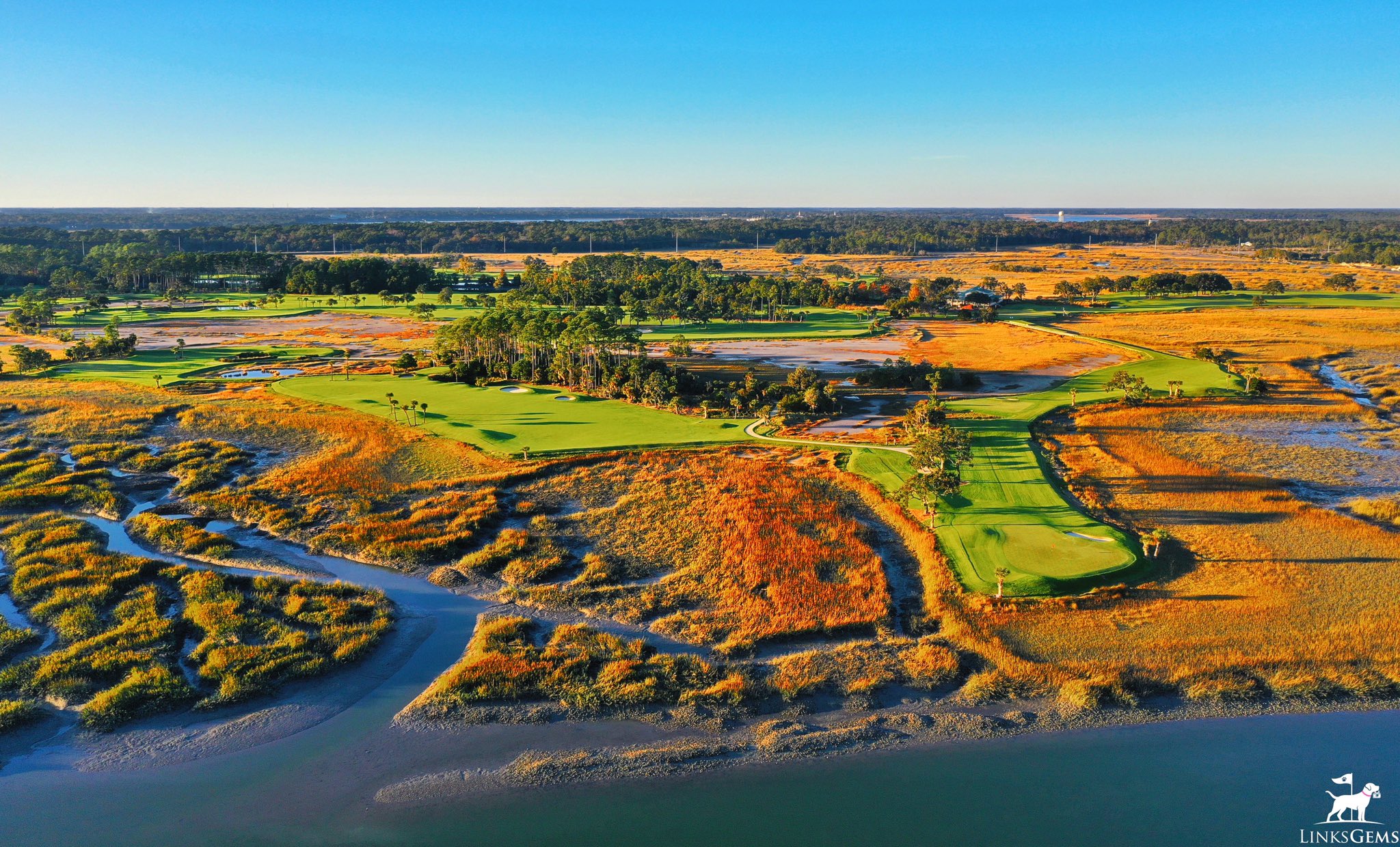 Secession Golf Club Beaufort South Carolina. A round here is enhanced by the club rule of walking the course with a caddie. The site itself is a peninsula in marsh with several holes on individual islands.